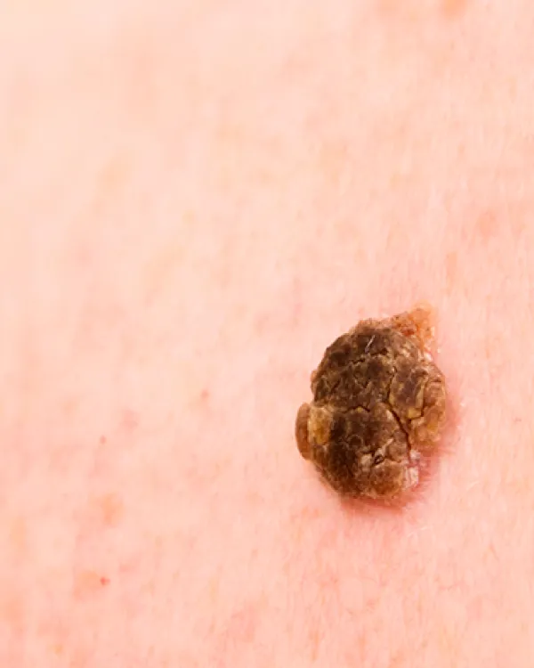 Una queratosis actínica es una mancha áspera y escamosa en la piel que se presenta después de años de exposición al sol. A menudo aparece en la cara, los labios, las orejas, los antebrazos, el cuero cabelludo, el cuello o el dorso de las manos.